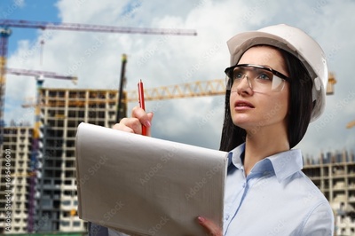 Portrait of a Beautiful Civil Engineer Working at Construction Site.