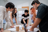 Group of creative Businesspeople brain storm meeting presentation,discussing roadmap to product launch, planning,strategy,dashboard,new business development,working with new startup project in office