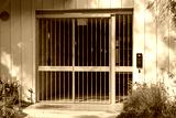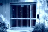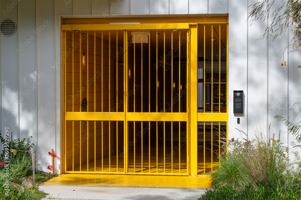 Security gate at the entrance of a modern residential or commercial building. Concept of access control, safety, restricted entry, and urban architecture.