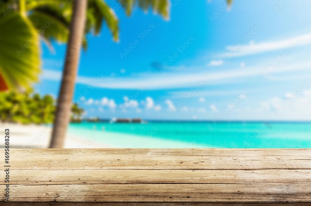 Beach Table on Sand And Palm Seascape