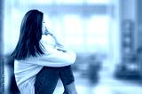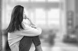 Woman feeling emotionally drained, loneliness at home