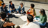 Group of young adults discussing social issues outdoors in a lively gathering