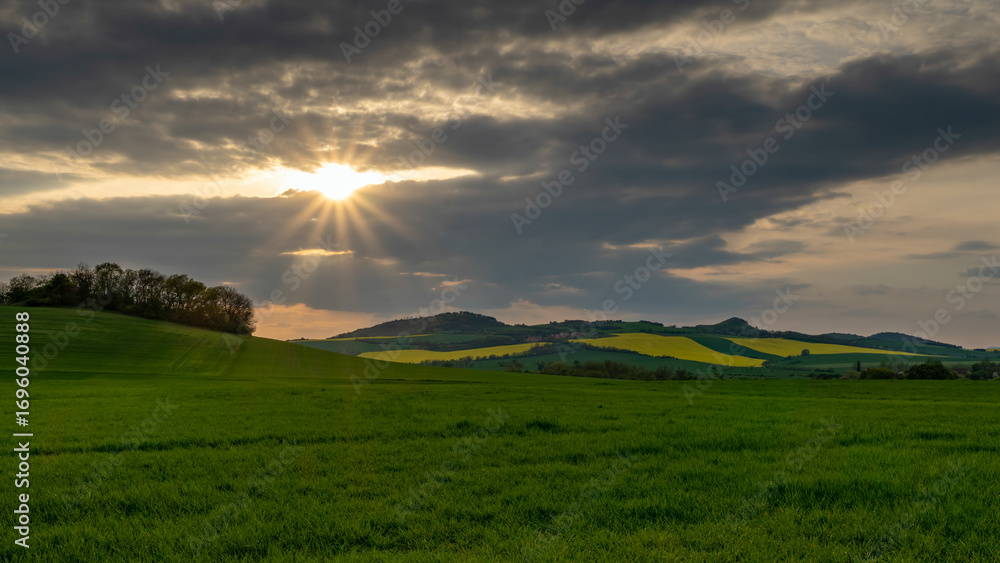 sunset of the Czech Central Mountain (Czech Republic) Europe.