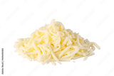 Pile of grated mozzarella cheese on transparent background