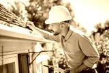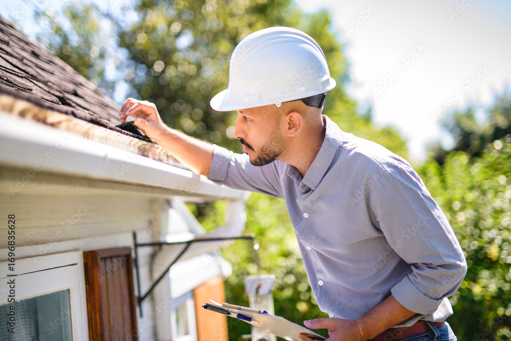 Arab islamic man with hard hat to roof inspector