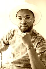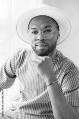 Portrait of black fashion American wearing great looking clothes with white hat