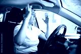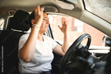 woman at car window drive a new car very sad about car problem