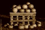 Many orange pumpkins are displayed on pallets for sale. The pallets are placed on a lawn in front of a dark background of bushes.