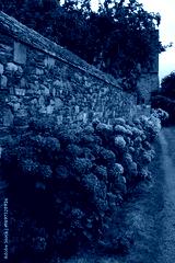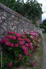 Pink hydrangea flowers growing in the garden in Britanny