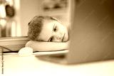 Kid preparing for exam with laptop. Student sitting at desk during distance education class. Smart child in virtual schoolwork and study. Child learning mathematics on laptop in home classroom.