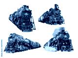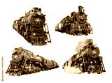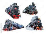 Set of isolated train locomotives railway on white background
