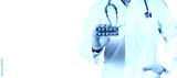 This Will Help. Doctor Holding Blisters With Red Pills, Close-up