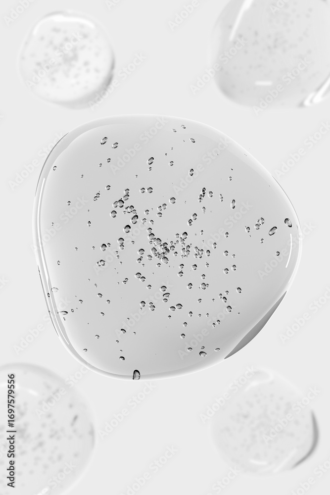 Transparent 3D molecules, liquid gel drops, bubbles. Cosmetic products for skin care, hyaluronic. Abstract background pattern. Healthcare and medicine designs concept,beauty.