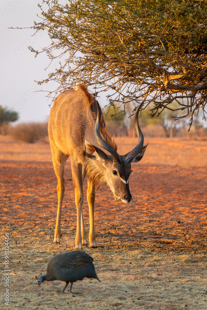 Greater kudu in the kalahari desert, Namibia landscape and wildlife, Africa