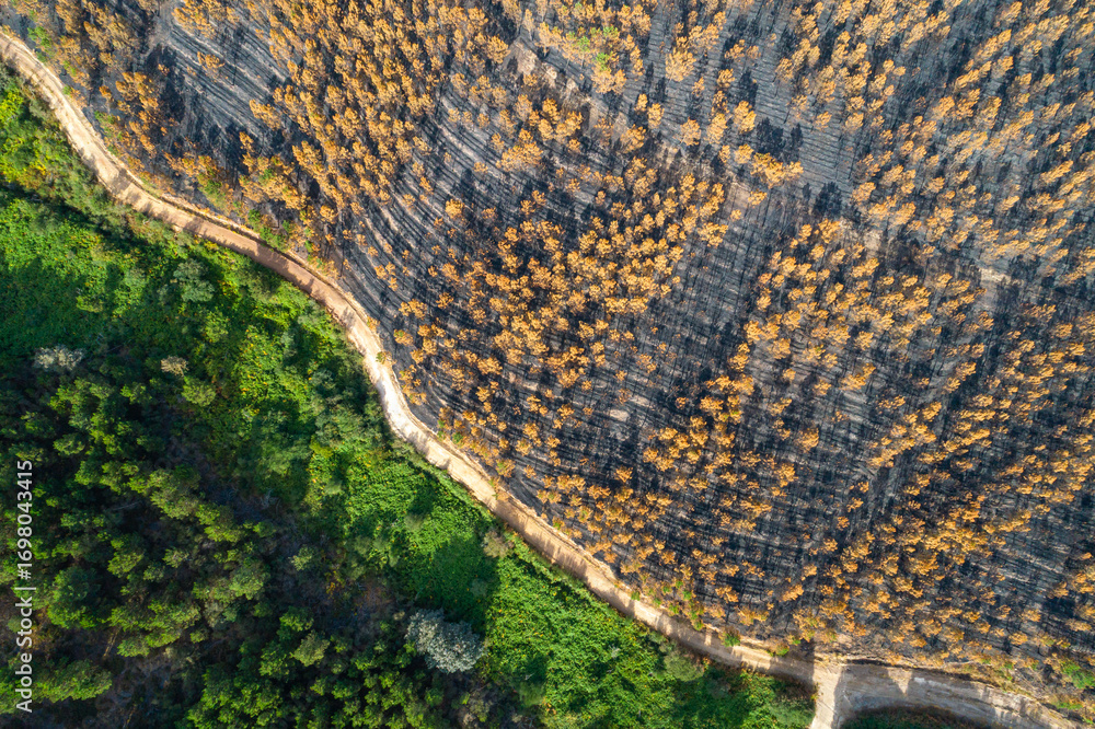 The sharp contrast between a burnt and a green forest The Dividing Line