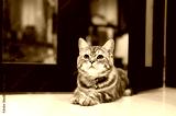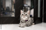 Cute little cat American Shorthair.and Is staring at us. With eyes that watch the resolute and pet feed home.
