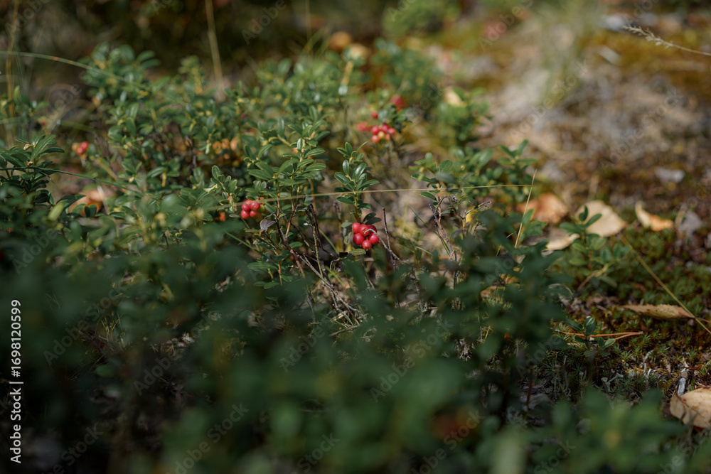 wild lingonberries growing in the forest