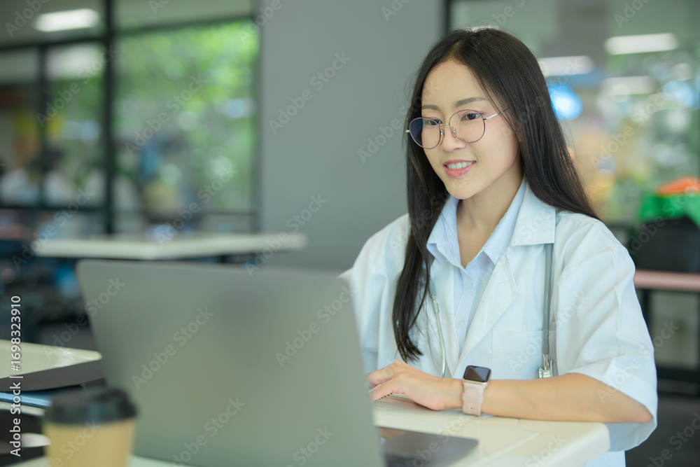 Healthcare Female doctor with tablet for telemedicine, research or online consultation in hospital.