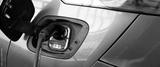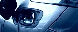 Electric car charging plug with glowing green indicator