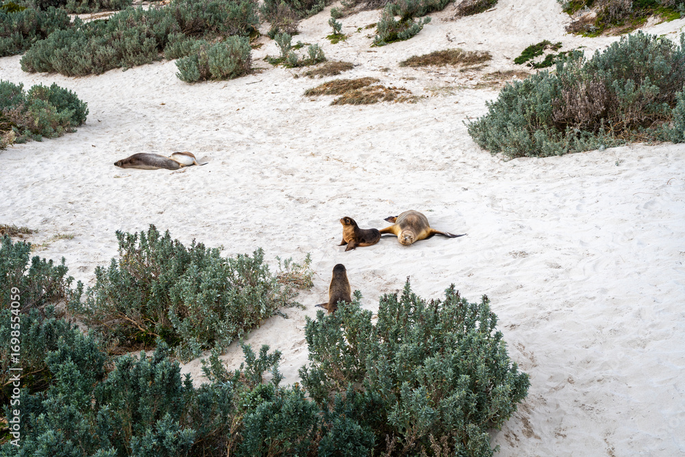 Seals resting on sandy beach at Seal Bay, Kangaroo Island, Australia