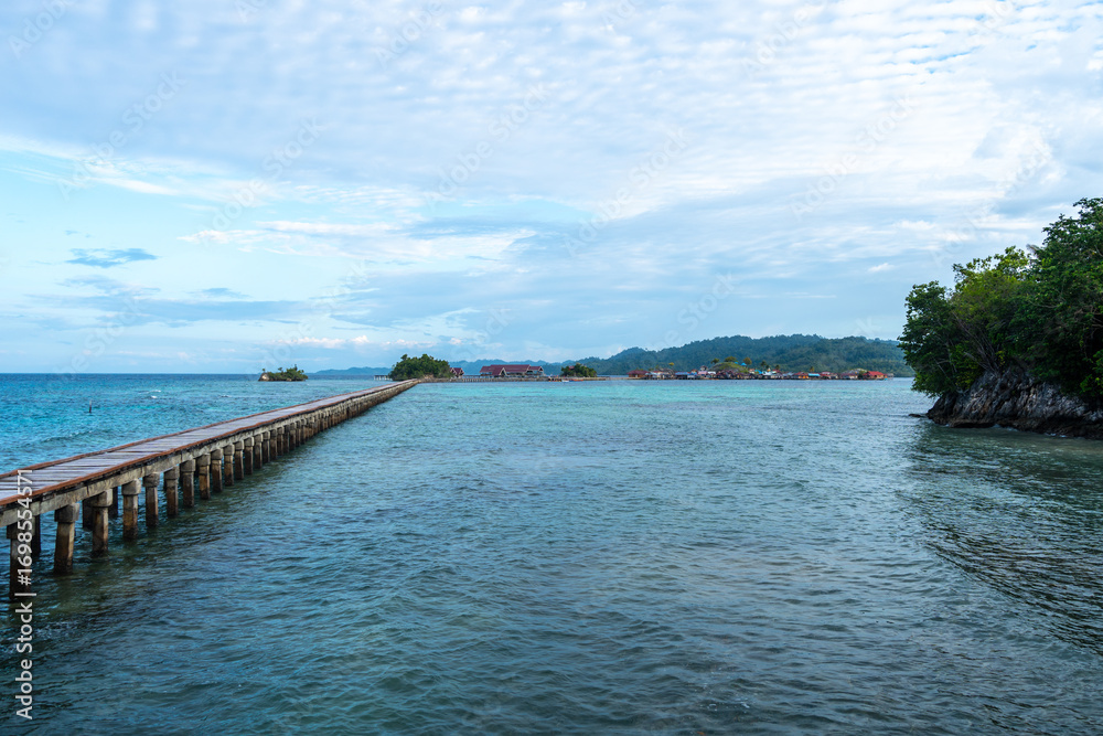 Wooden jetty to Bajo village, Pulau Papan, Sulawesi, Indonesia