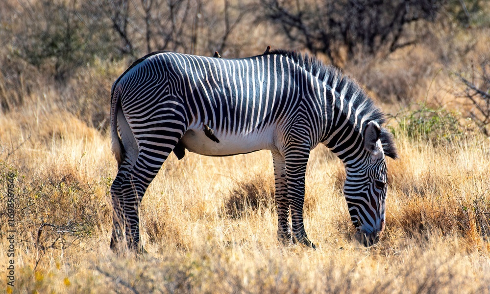 Grevy's Zebra walking in the Savannah at the Samburu national park in Kenya