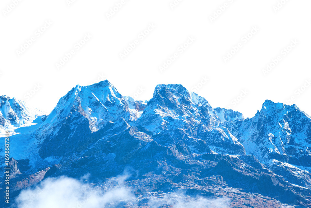 Mountains range with peaks in snow, winter mountains panorama in PNG isolated on transparent background