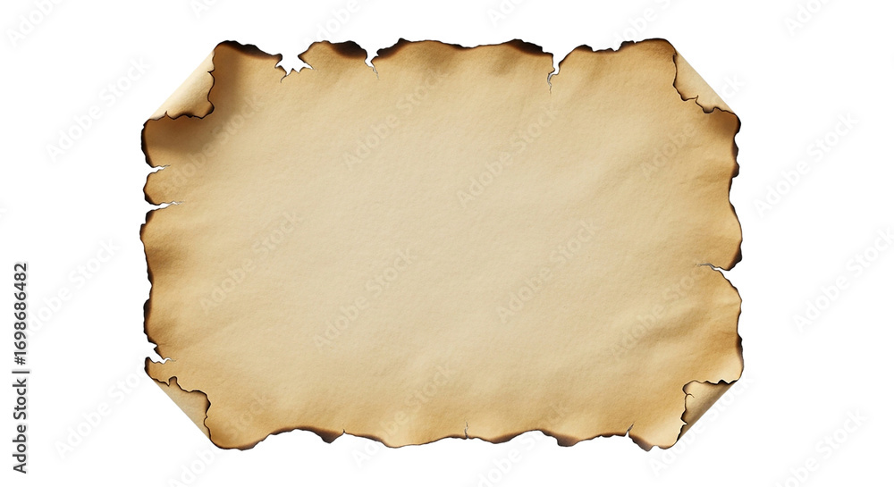 Aged Parchment Paper with Burned Edges Vintage Scroll Texture Ancient Document Template on transparent background