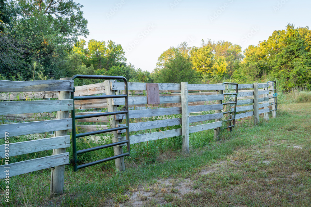 horse corral at Whitetail campground in Nebraska National Forest, late summer scenery