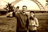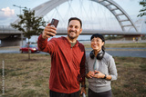 Happy couple taking selfie after workout outdoors