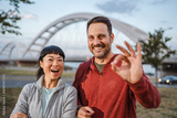 Happy couple showing okay sign after exercising outdoors