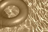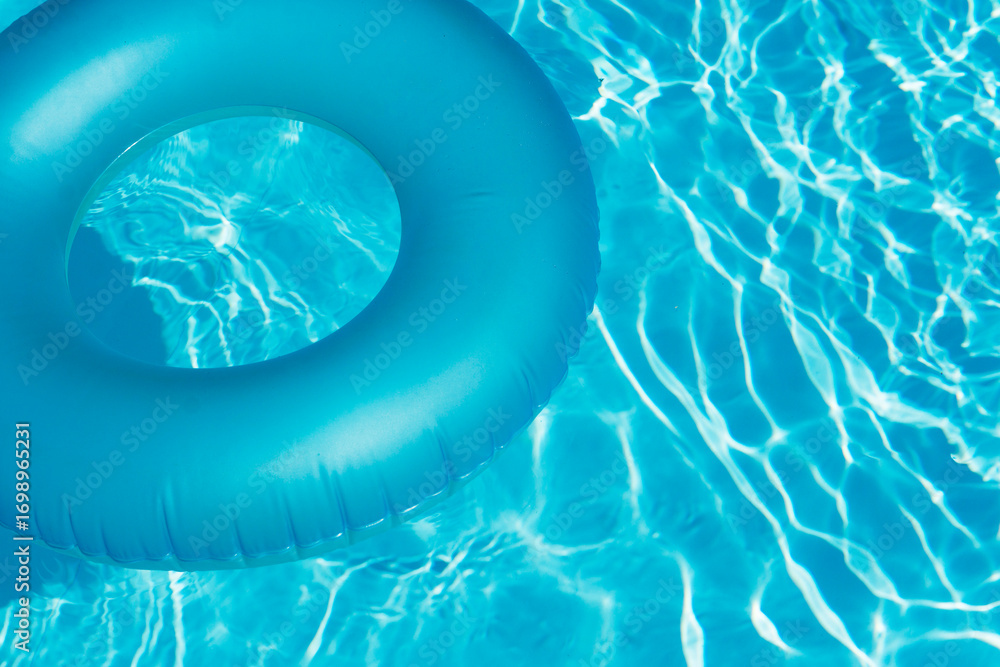 Blue summer pool rubber ring floating on a vacation swimming pool