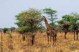 Close-up of Masai Giraffe - Giraffa tippelskirchi- feeding off acacia trees in the Serengeti, Tanzania