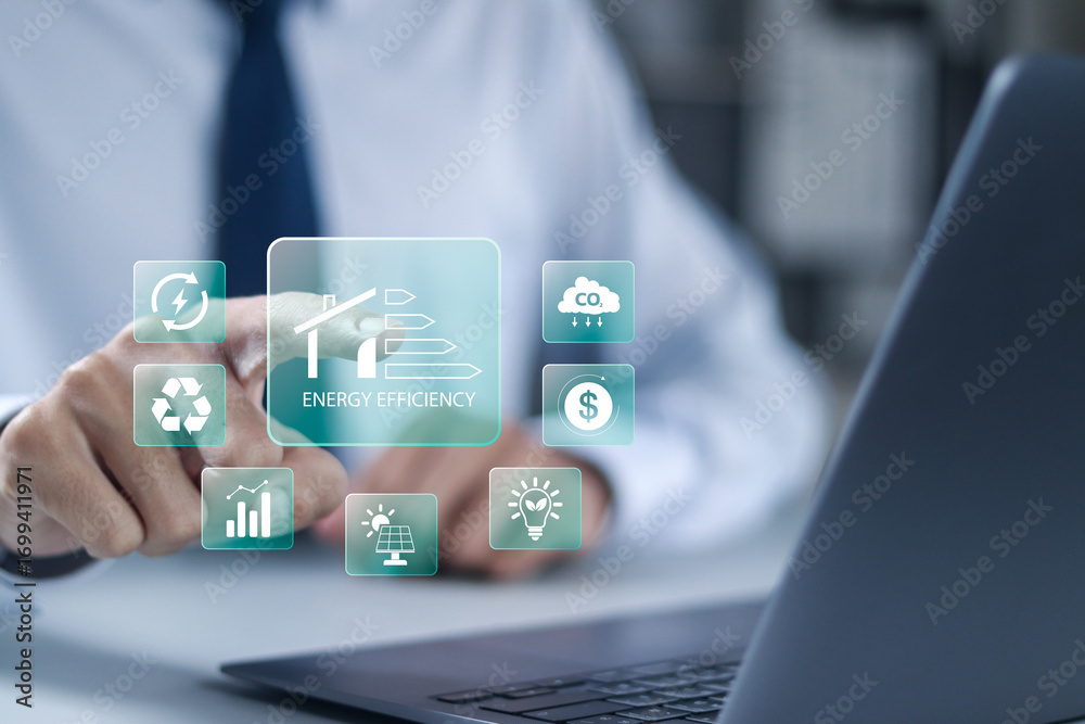 Energy efficient rating class concept, energy efficiency level meter, Low-consumption ecological house for sustainable development concept.