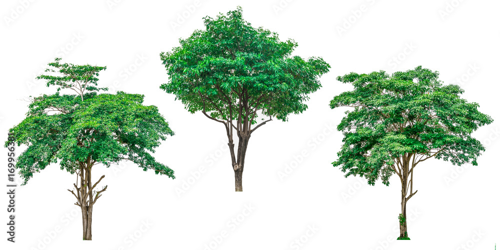 Collection of green trees isolated on white background for use in architectural design or decoration work.