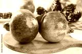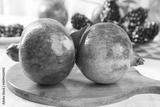 Fresh Tunisian Soft-Seeded Red Pomegranates on Wooden Board with Ruby Arils