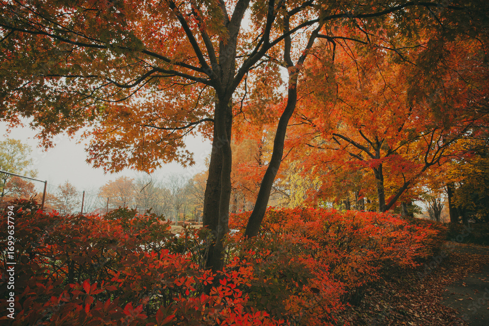 Japanese autumn foliage in the park