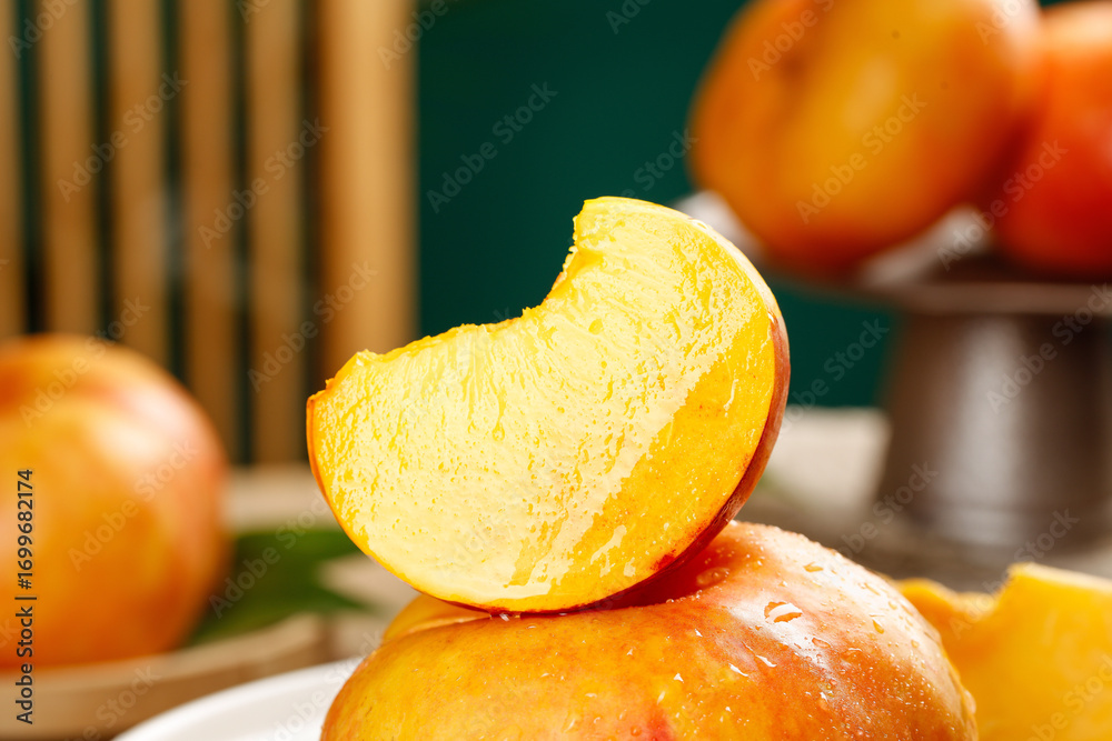 Fresh Shandong Peach Slice with Golden Butter-Like Flesh - Healthy Garden Fruit Close-up