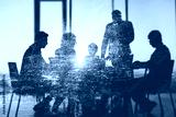 Corporate people working together in the conference room of their office, sharing idea and planning the business strategy of their company - Teamwork and brainstorming abstract concept. High quality