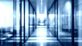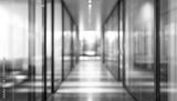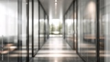 Blurred office hallway with glass walls and neutral colors creates a sense of space. Professional photos for backgrounds for text, banners, posters, and web displays. High quality
