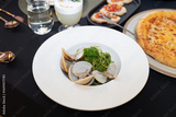 Seafood Pasta Delight: a beautifully styled photo of seafood pasta on a round, white plate with several tasty food around it. the appetizing look of the pasta is enough to make anyone's mouth water.
