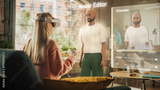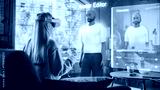 Woman Sitting on a Sofa at Home, Using Virtual Augmented Reality Headset to Create a Female Avatar. She is Using Controllers, Choosing a Hairstyle, Changing Color Until Finding a Best Match