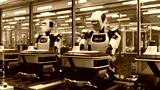 Advanced Humanoid Robots Connect Mechanical Components on a Conveyor Belt, Assembling Intelligent Delivery Devices. Fully Autonomous Unmanned Manufacturing System Powered by Artificial Intelligence
