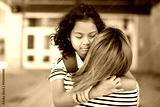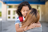 high school student boy outside on summer season with mother doing hug