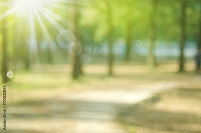 Blur nature green park with sun light abstract background.