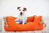 Puppy Dog Sitting in Pet Bed