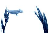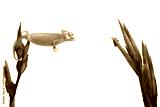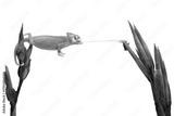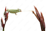 Baby High Pied Piebald Veiled Chameleon (Chamaeleo calyptratus) is catching its prey with its tongue.