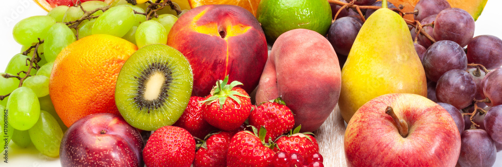 Frisches und vitaminreiches Obst liegt zusammen als Symbolbild für gesunde und vegane Ernährung