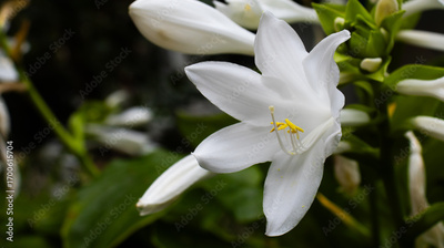Delicate white flowers bloom gracefully under gentle sunlight in a serene garden, showcasing nature's artistry during a calm afternoon
