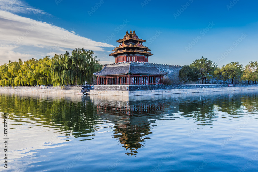Turret of Forbidden cityt in Beijing, China. Forbidden City was the imperial capitol of ancient Chinese dynasties in central Beijing